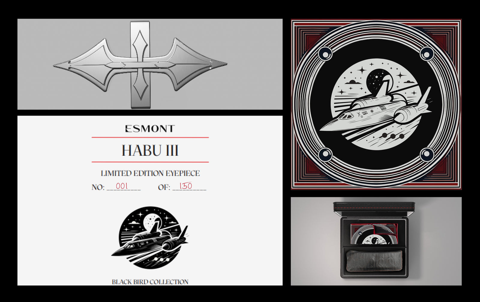 Habu III features a lightweight rectangular silhouette, ultra-thin temples, embossed propeller tips, and a 2 microns gold-plated ornament inspired by the SR-71