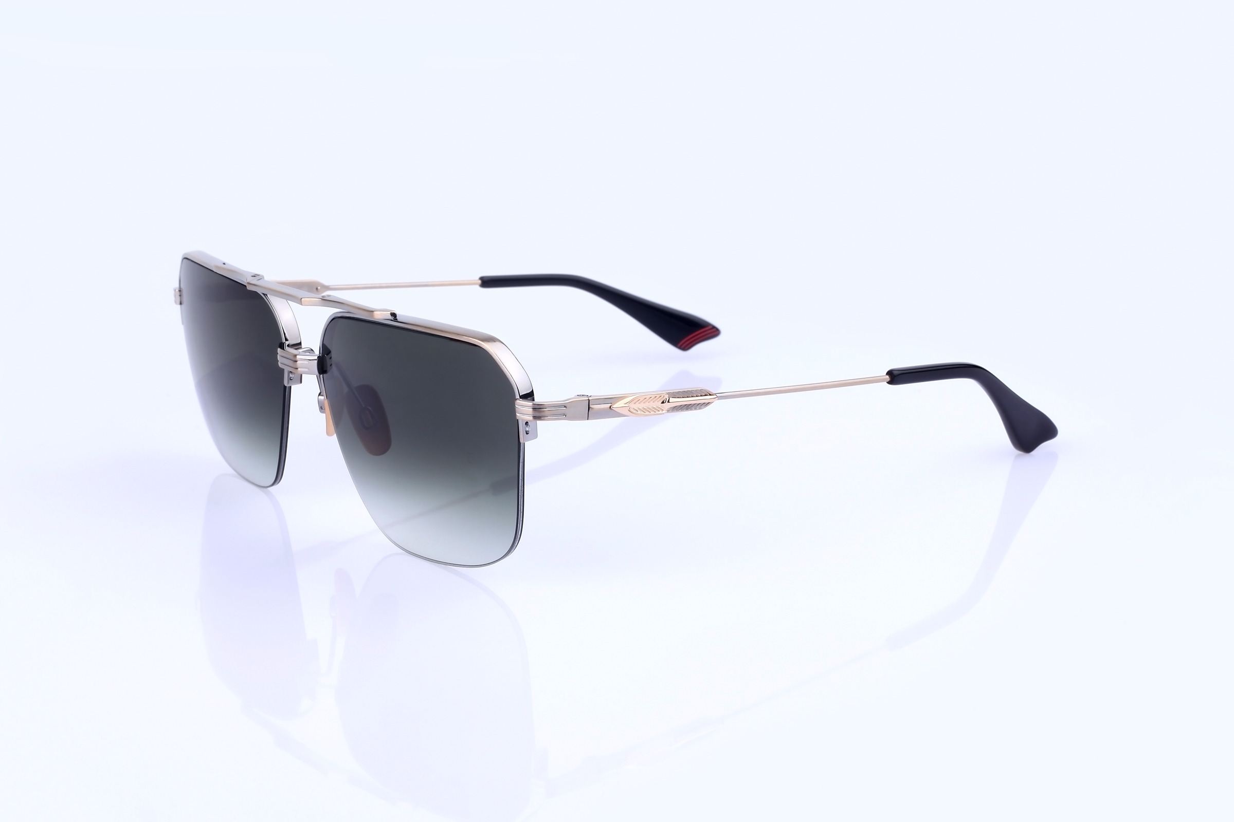 A refined half-rim aviator featuring 2 microns gold-plated ornament and aerodynamic design, inspired by the legendary SR-71 Blackbird.