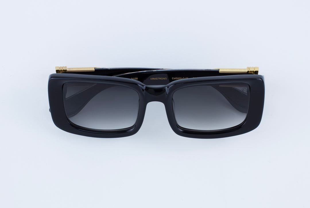 The Armstrong eyepiece pay tribute to the Apollo 11 mission, blending aerospace inspiration with artisanal craftsmanship. Handcrafted in Sabae, Japan, these limited-edition eyepieces combine durable titanium and refined Japanese acetate. Each frame features intricate sterling silver ornaments inspired by space exploration, offering a timeless design that honours humanity's greatest achievement. A collector's masterpiece for those who seek boundless horizons.