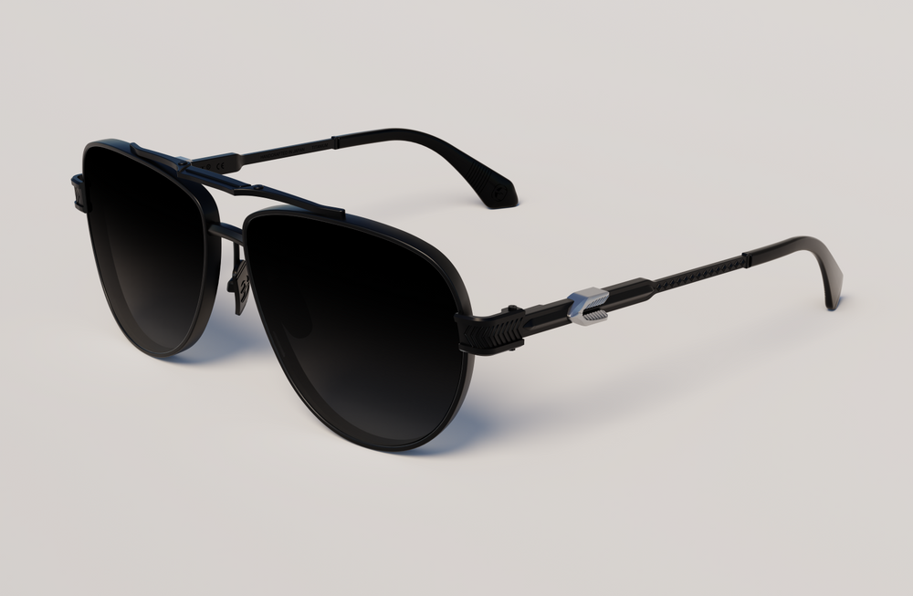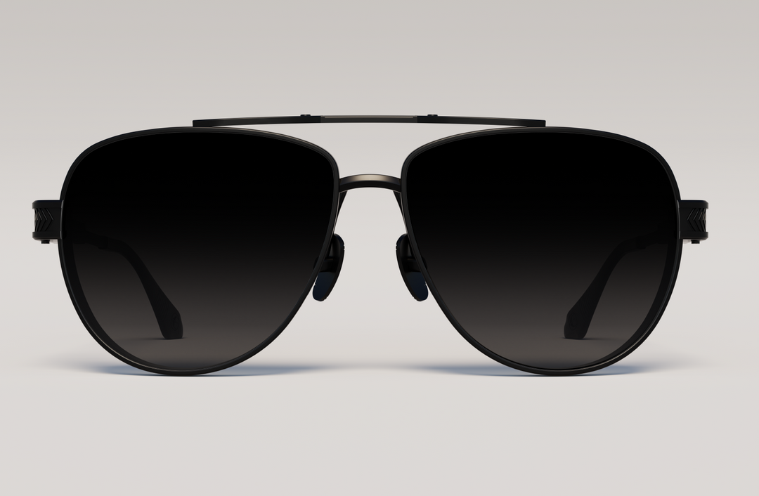 The Buzz - Black Gradient eyepiece is inspired by the historic Apollo 11 mission, featuring classic aviator silhouette and sleek lines that embody the spirit of space exploration. Adorned with intricate sterling silver ornaments, it reflects the legacy of Buzz Aldrin, showcasing a design that captures the courage and innovation of humanity’s journey to the moon. An elegant tribute to adventure and ambition.