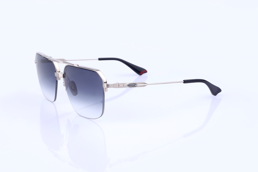 A refined half-rim aviator featuring sterling silver ornaments and aerodynamic design, inspired by the legendary SR-71 Blackbird.