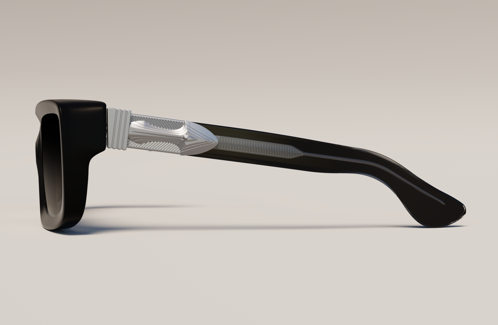 The Armstrong - Palladium eyepiece pay tribute to the Apollo 11 mission, blending aerospace inspiration with artisanal craftsmanship. Handcrafted in Sabae, Japan, these limited-edition eyepieces combine durable titanium and refined Japanese acetate. Each frame features intricate sterling silver ornaments inspired by space exploration, offering a timeless design that honours humanity's greatest achievement. A collector's masterpiece for those who seek boundless horizons.