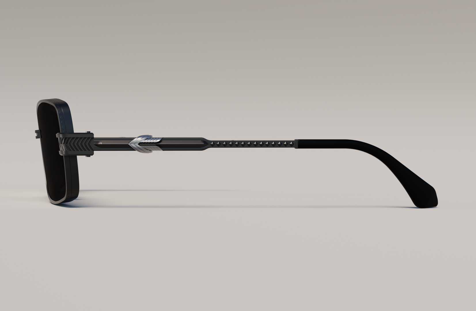 The Eagle - Black eyepiece, inspired by the Apollo 11 Lunar Module, showcases a distinctive rectangular design that echoes the module's precision and innovation. Handcrafted in Japan, it combines robust titanium with eco-conscious acetate. Sterling silver ornaments add elegance, while its limited-edition status and exclusive packaging make it a collector’s masterpiece, celebrating the ingenuity and spirit of space exploration.