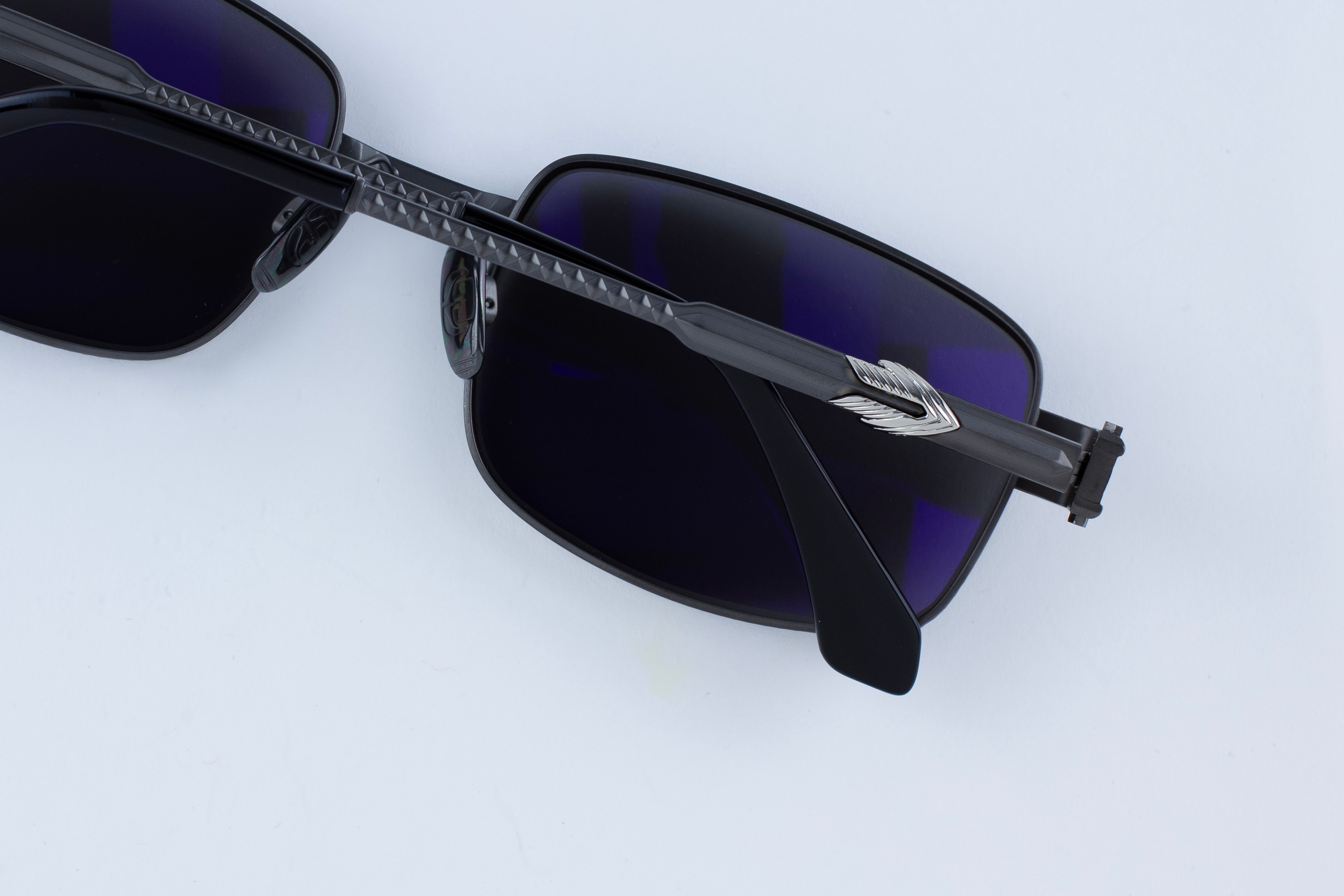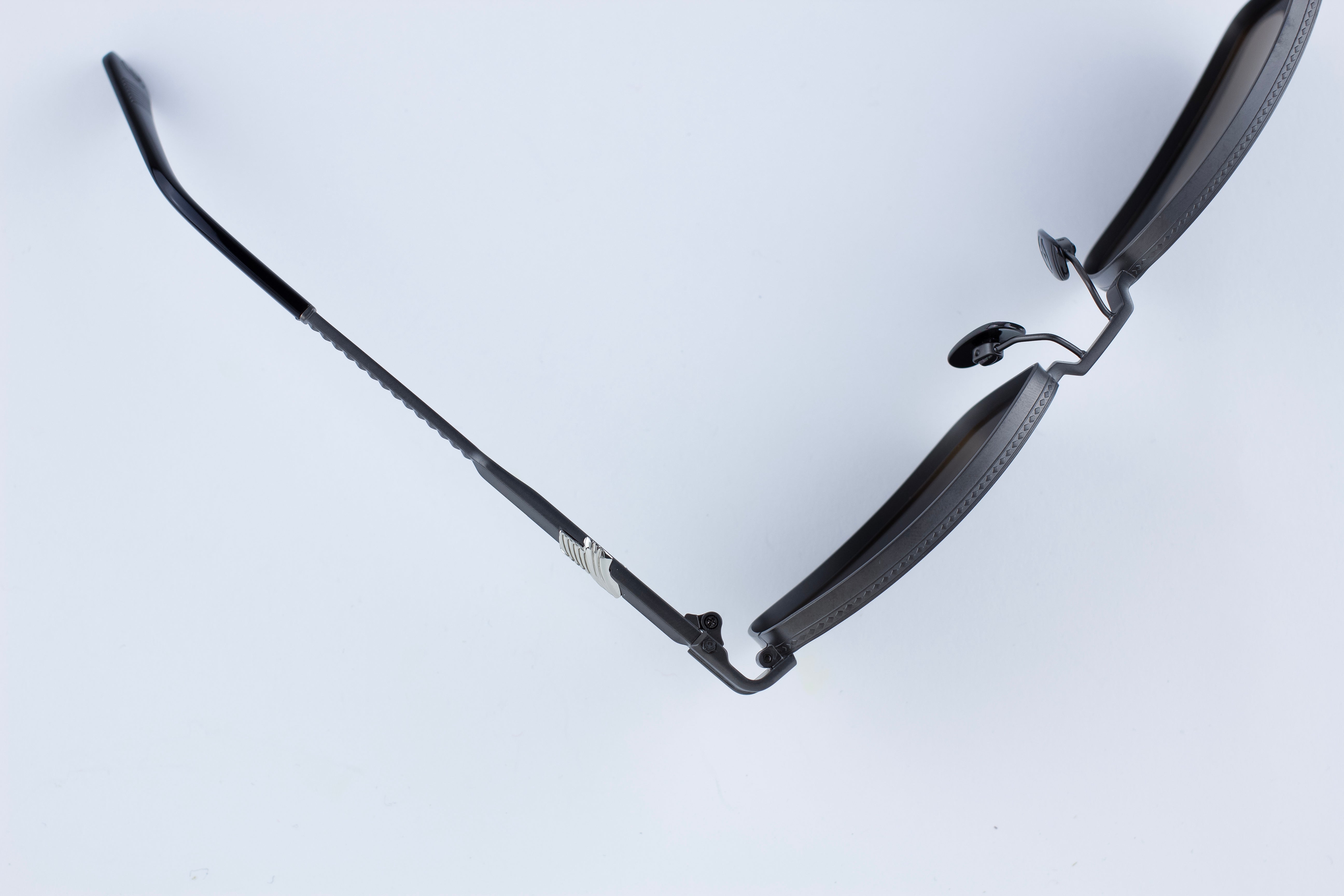 The Eagle - Black Gradient eyepiece, inspired by the Apollo 11 Lunar Module, showcases a distinctive rectangular design that echoes the module's precision and innovation. Handcrafted in Japan, it combines robust titanium with eco-conscious acetate. Sterling silver ornaments add elegance, while its limited-edition status and exclusive packaging make it a collector’s masterpiece, celebrating the ingenuity and spirit of space exploration.