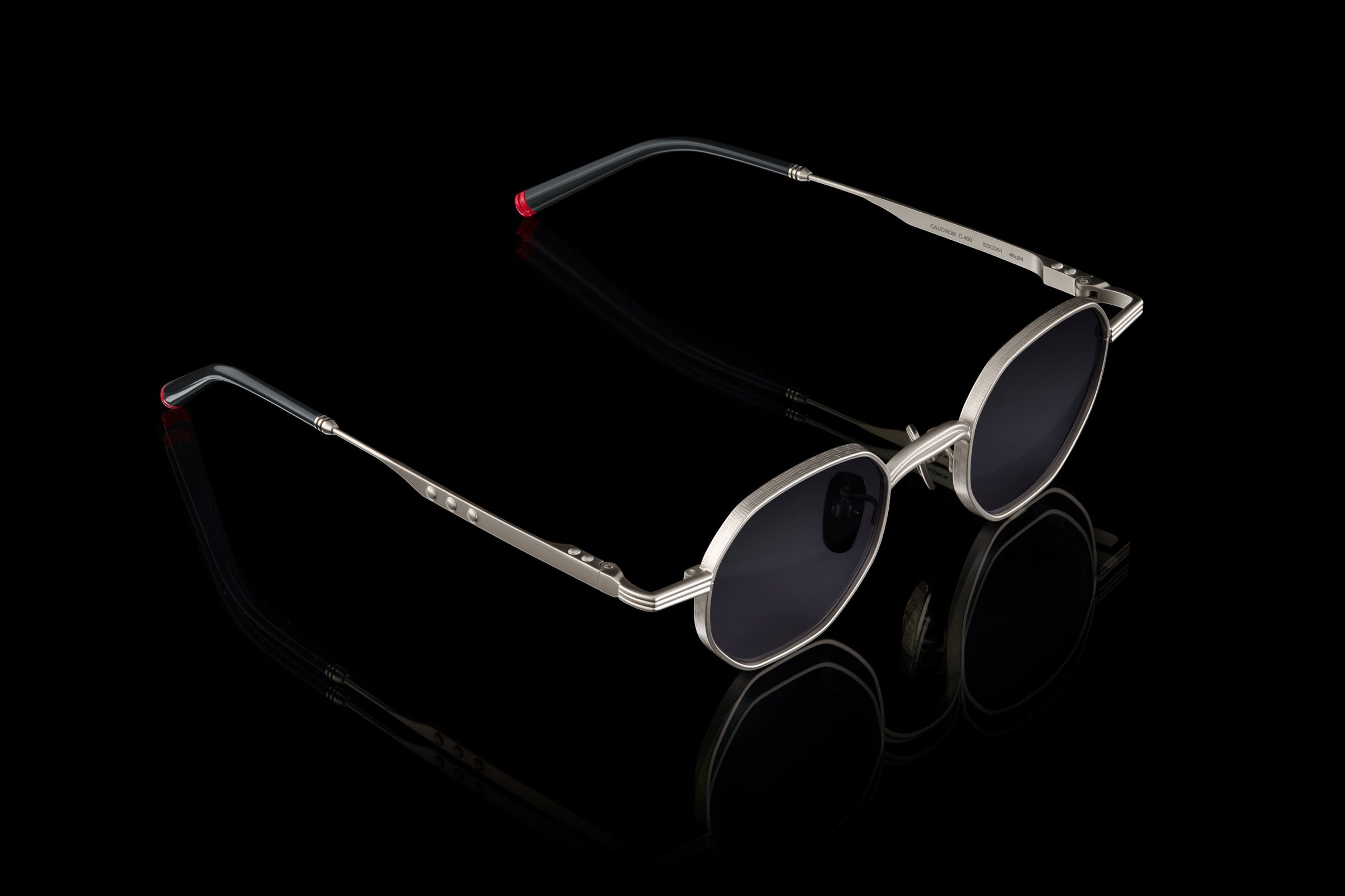 The Caudron - Matte Silver eyepiece, inspired by the 1935 Coupe Deutsch-winning aircraft, blends innovation with unique design elements. Featuring exposed rivet details along the temples and round lenses mirroring the plane’s fuselage, these glasses evoke speed and precision. Ideal for the modern adventurer driven by competition, the Caudron C450 offers both bold aesthetics and a tribute to aviation mastery.